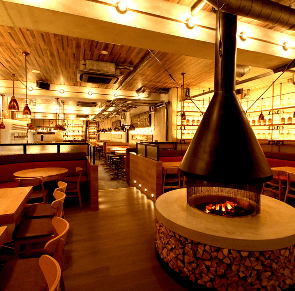 Our newest store, Shin-Toradori store, has a warm wooden interior reminiscent of a log cabin and serves food reminiscent of fun camping.