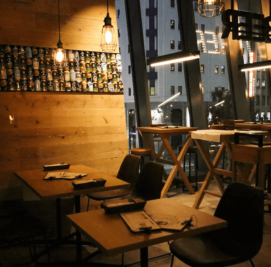 Our Akasaka and Kanda stores have a "kitchen" theme with interiors decorated with stainless steel and kitchen utensils, and although we are a craft beer specialty store, you can enjoy the excitement of tasting delicious food.