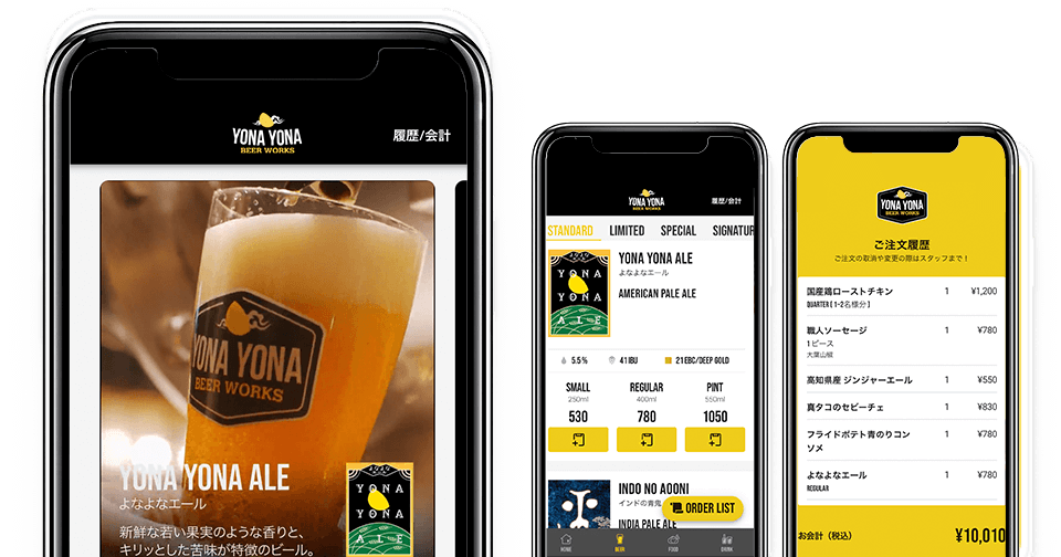 YONA YONA BEER WORKSではセルフオーダー”トレタO/X”を導入しています。 ご注文からお会計まで全てがお客さまのスマホで完結するサービスです。このセルフオーダーには注文が楽しくなるコンテンツがたくさん詰まっています。写真やムービーだけでなく、おすすめの商品には開発秘話やこだわりポイントなどが読み応えのある文章で紹介されています。まさに、アクセスした瞬間からワクワクが止まらないセルフオーダーです。ぜひ、クラフトビールや料理だけでなく、注文が楽しい!を体験しにきてください。